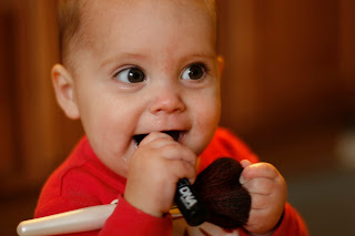 Wait til she gets Lucy age, I have to pretend I'm putting makeup on her to avoid big tantrums! But Nola thinks its funny when I tickle her little nose with the powder brush. These girls are just going to get more and more fun!PS is she wearing a skeleton shirt??